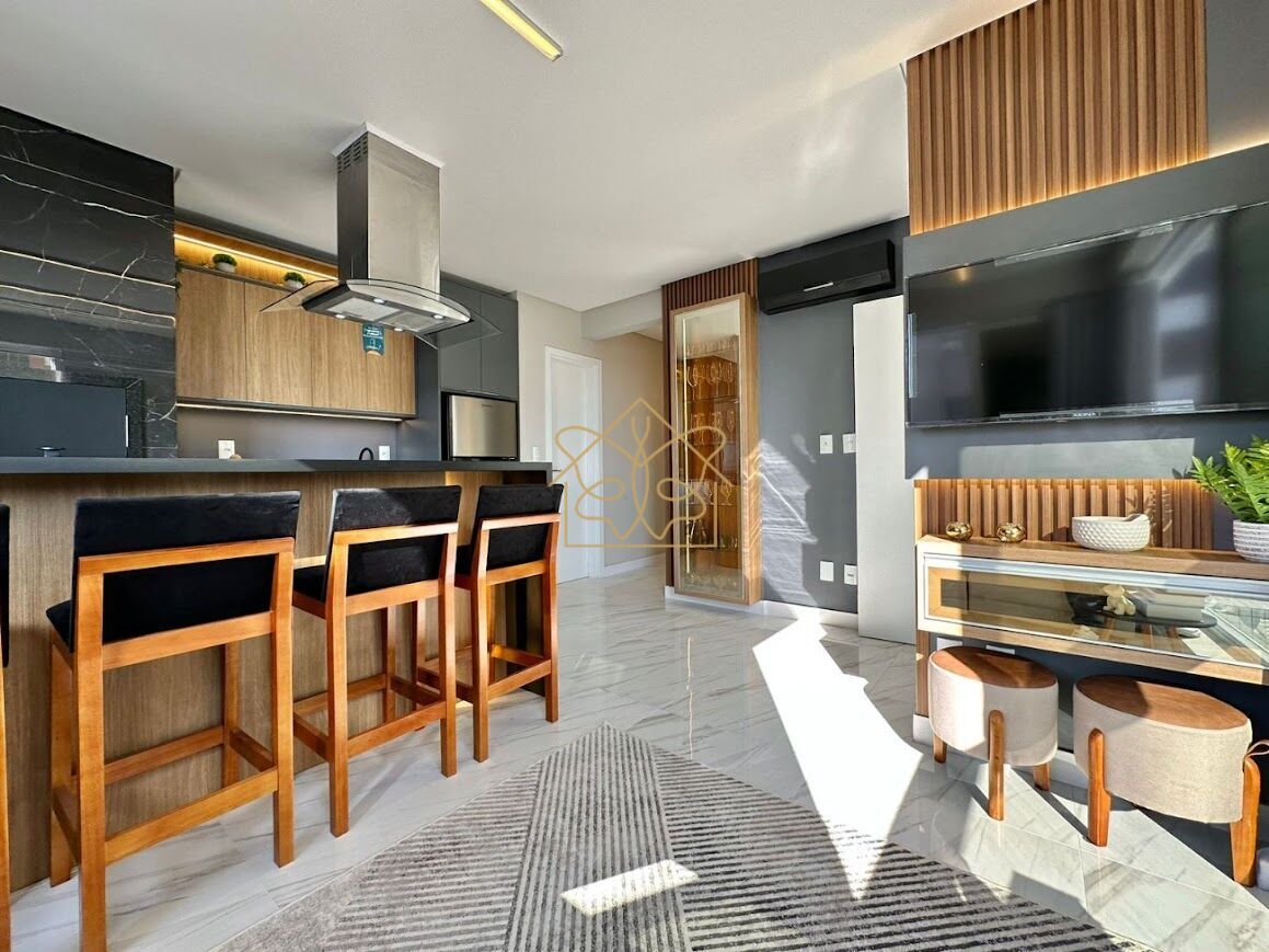 APARTAMENTO MOBILIADO E DECORADO: Com 2 suítes, Lavabo, Cozinha Americana, sala de estar/jantar, 01 box de garagem, prédio com elevador, serviço de portaria, hall mobiliado e decorado, salão de festa, rooftop com vista para o mar e serra.