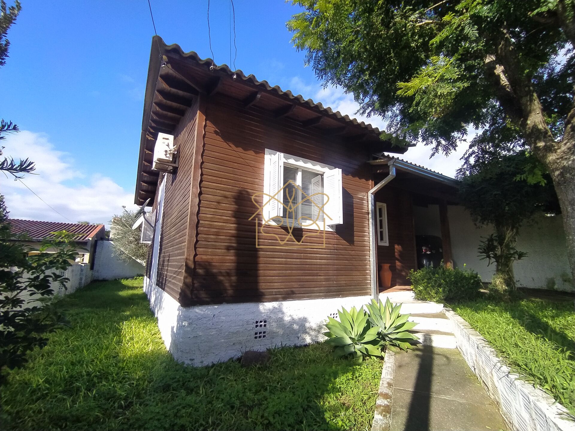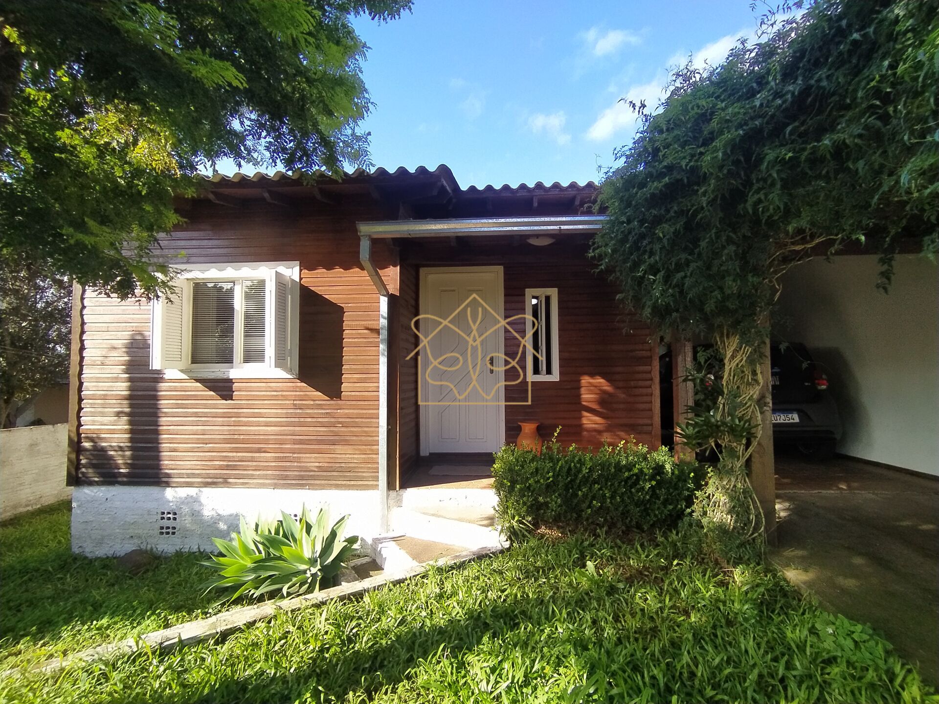 Charmoso e aconchegante chalé com parede dupla e localização estratégica. Essa casa encantadora possui 2 dormitórios, banheiro social e um espaço integrado de sala de estar e cozinha. Além disso, possui garagem coberta para 2 carros e um quintal com gramado e árvores frutíferas.