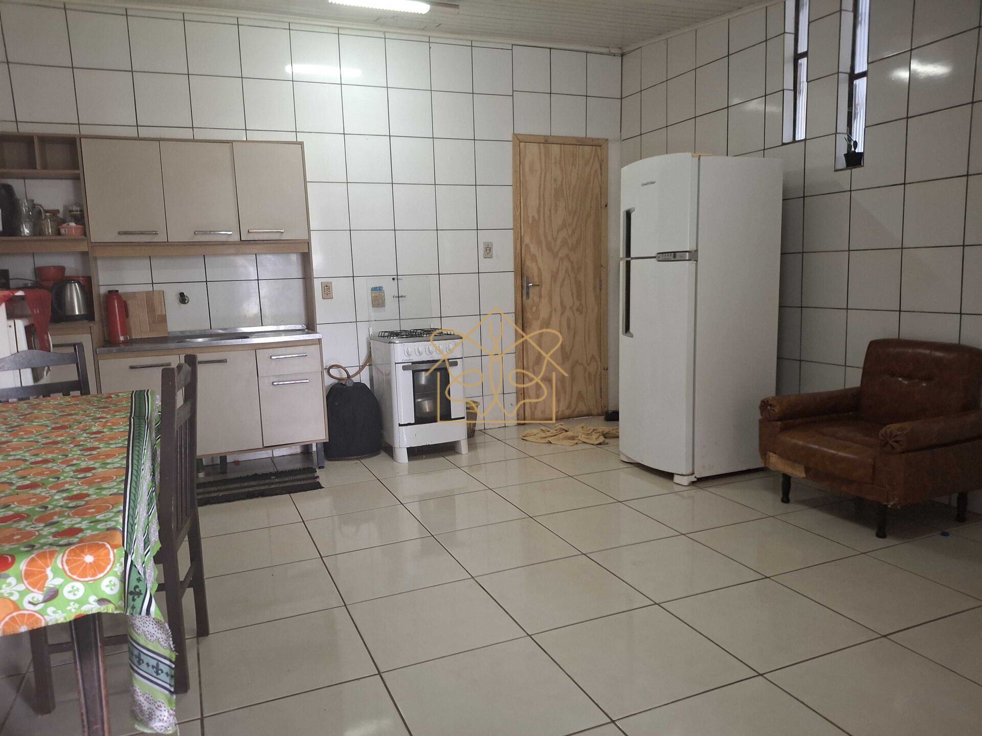 Excelente negócio. Casa de alvenaria, localizada na avenida principal, frente com gramado, toda murada. 2 dormitórios na parte inferior, 1 cozinha grande, 1 banheiro, 1 lavanderia com churrasqueira.