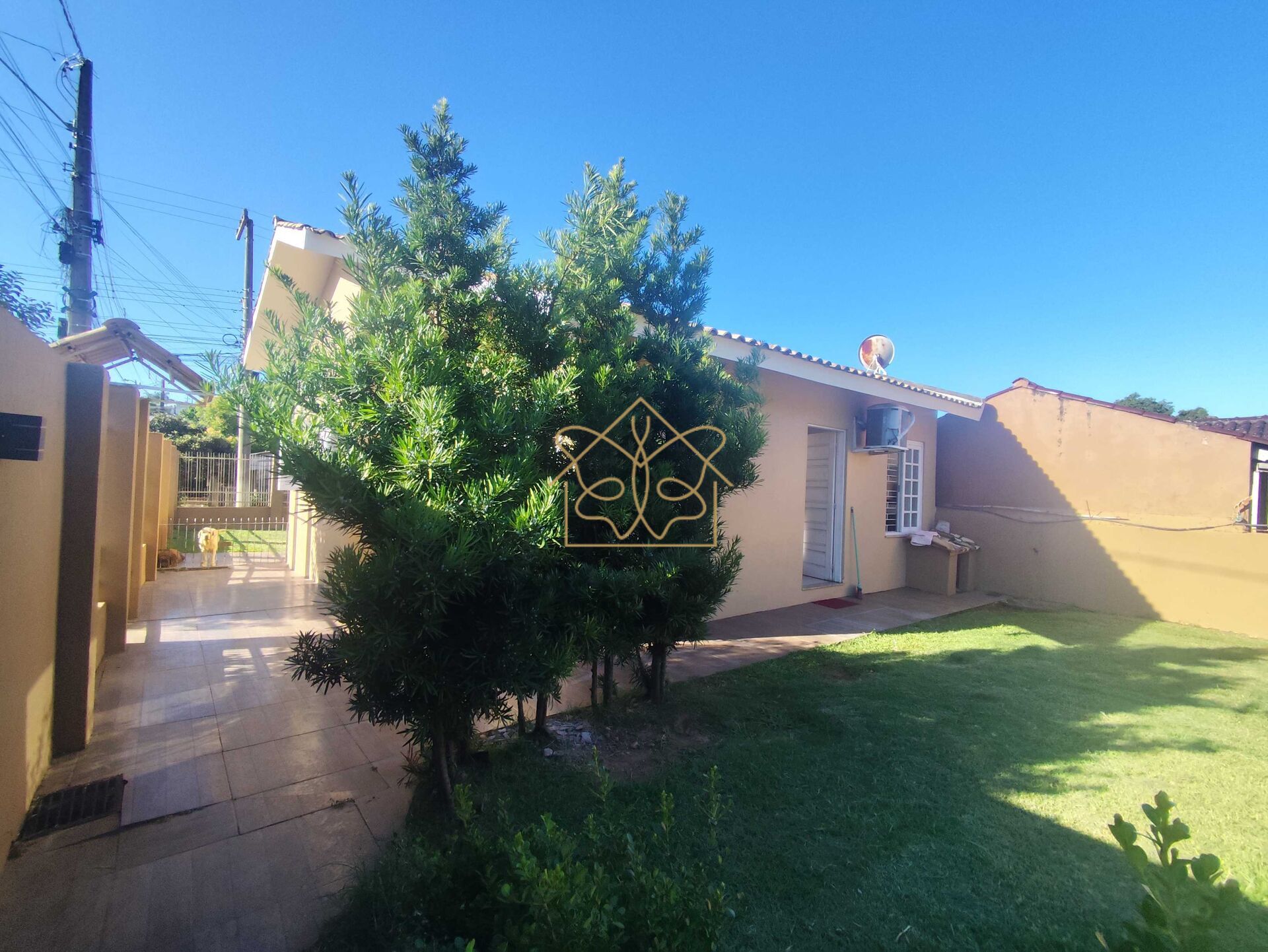 Terreno todo murado e gradeado, com portão eletrônico, garagem coberta com churrasqueira, área de serviço e lavabo.